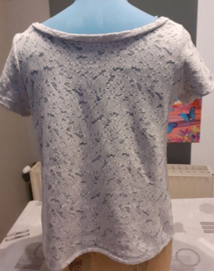 T shirt gris avec décolleté en dentelle - photo numéro 2