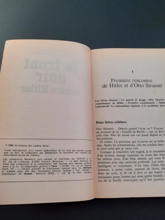 Livre Le front noir contre Hitler .L histoire d une lutte opiniâtre et clandestine contre le dictateur et son régime. Otto Strasser et Victor Alexandrov Bibliothèque Marabout Année 1968