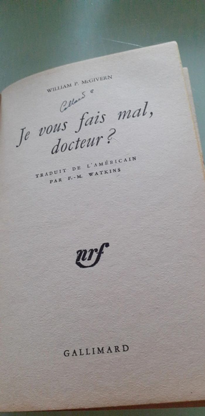 Je vous fais mal docteur ?de William P.McGivern Editions Gallimard Année 1968 Roman policier