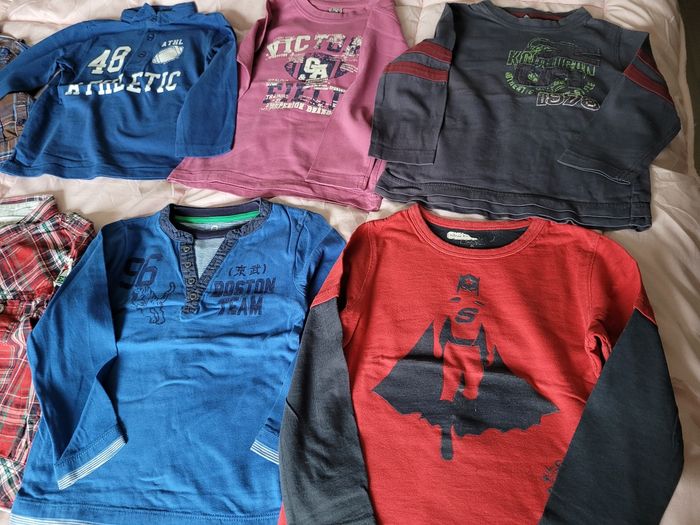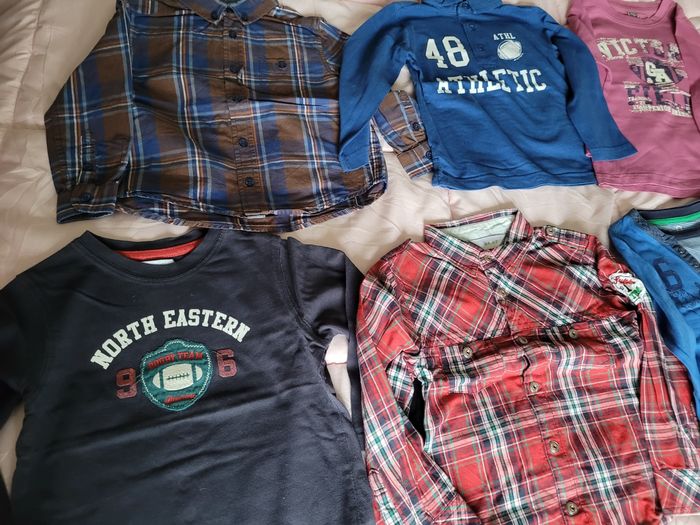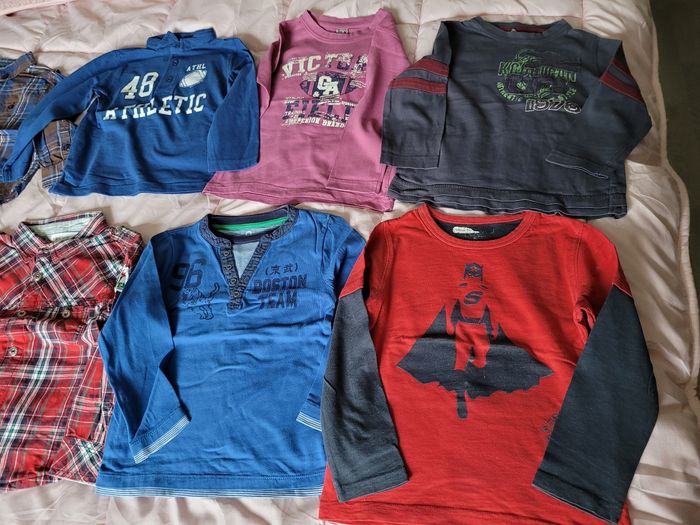 lots 8 hauts garçon 3ans tshirt Mlongue rouge et gris la compagnie des petits bon état t-shirt Mlongue bordeaux tao très bon état t-shirt Mlongue tao rose très bon état polo bleu inexenso bon état t-shirt Mlongue bleu okaidi bon état chemise kiabi rouge et verte petit 4ans bon état t-shirt Mlongue obaibi marine très bon état chemise marron et marine cyrillus très bon état