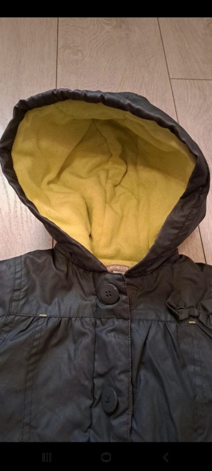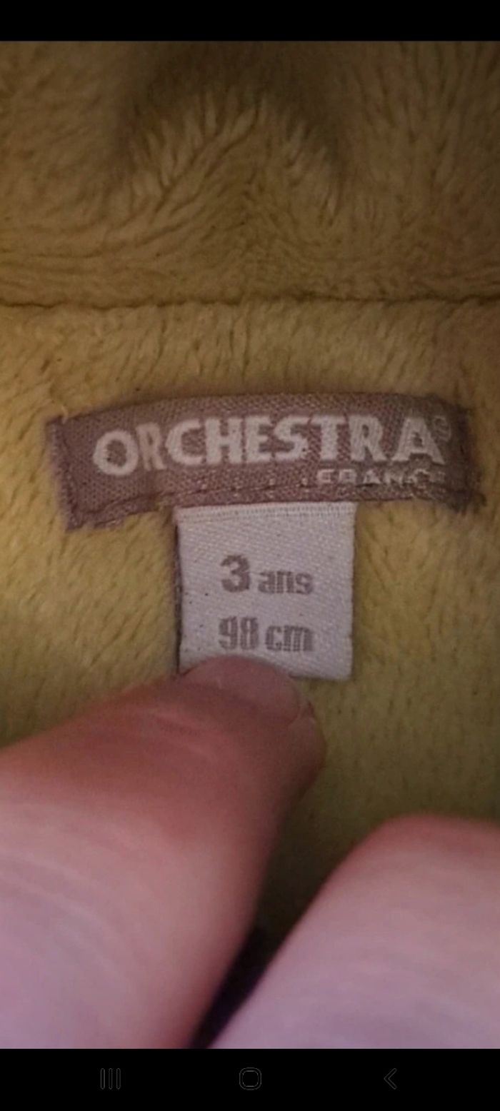 Manteau hiver fille 3 ans Orchestra Bon état. Traces à l'extérieur dues à une pertes de couleur du brillant (voir photos). Intérieur polaire. Intérieur en excellent état. Manteau avec capuche.