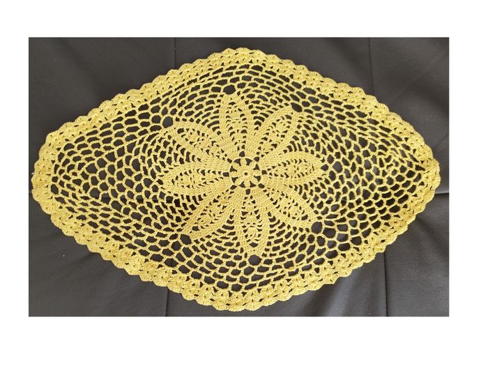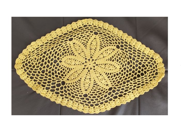 Napperon 23. Napperon jaune fait main. Longueur: 42 cm. Largeur: 28 cm. En très bon état. Sans marque. 3€. #vero38110decorations
