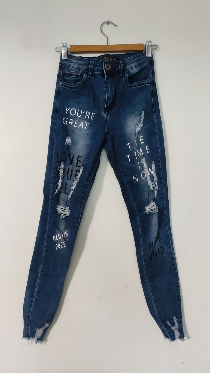 Jean tendance troué imprimé