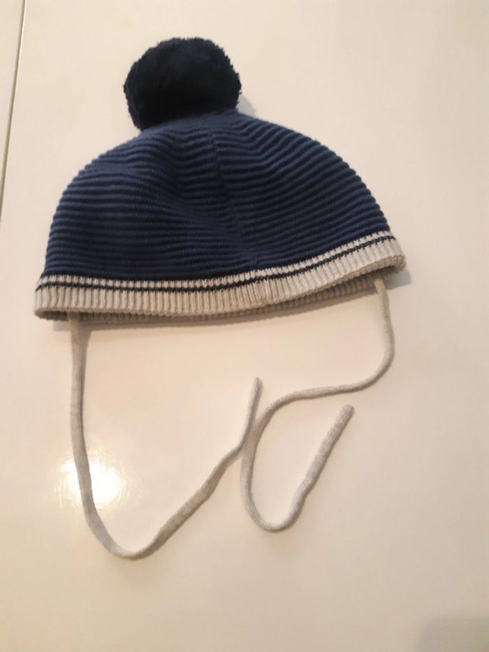 Bonnet bleu et gris Obaïbi. Sans étiquette taille 6/9mois.