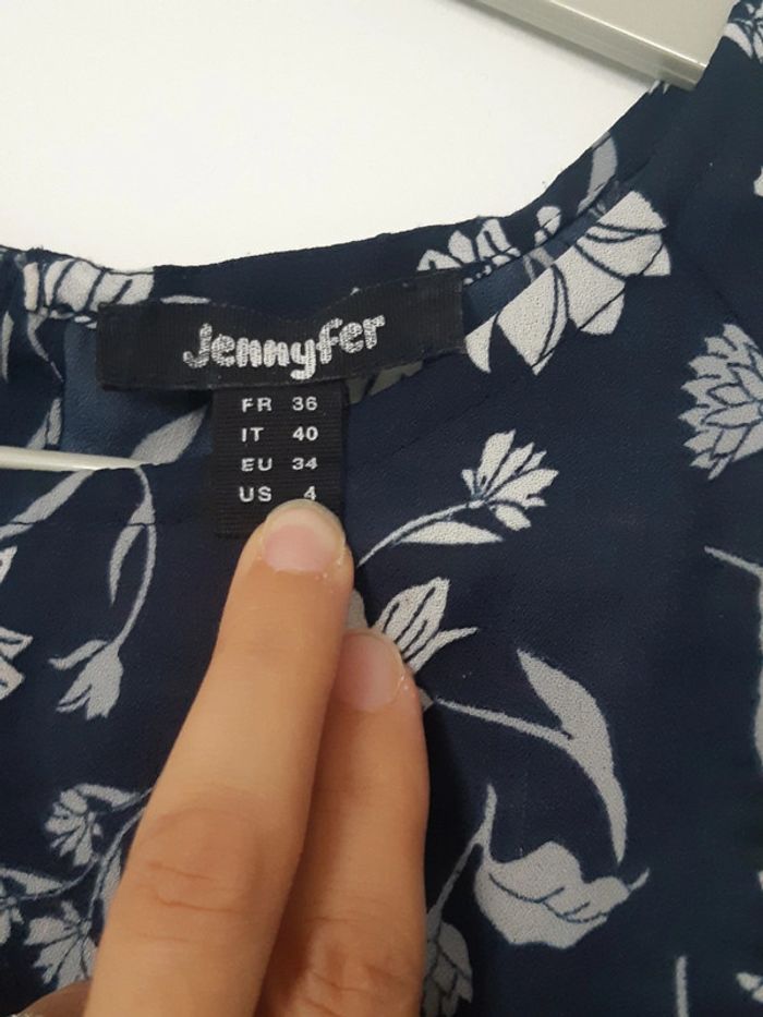 Blouse à nouer motifs marguerites blanches et grises. Taille 36.
