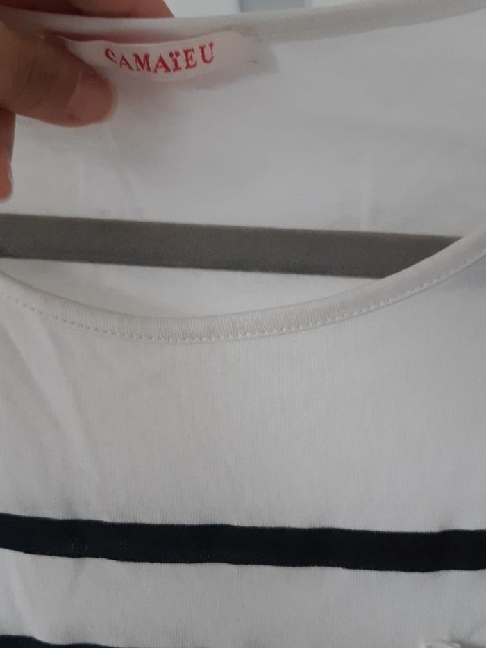 Tee-shirt rayé blanc et noir Camaïeu Taille S.