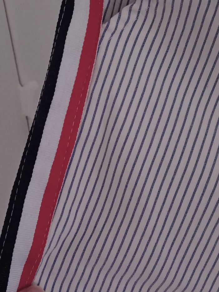 Pantalon rayé blanc et bleu avec bande tricolore sur le coté. Pas d'étiquette taille convient à une taille S/M.