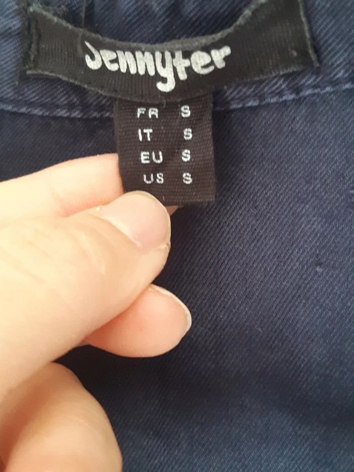 Chemise Jennyfer bleu nuit à clou argent/ doré (certains ont changés de couleur sûrement au lavage mais sinon très bon état). Taille S.