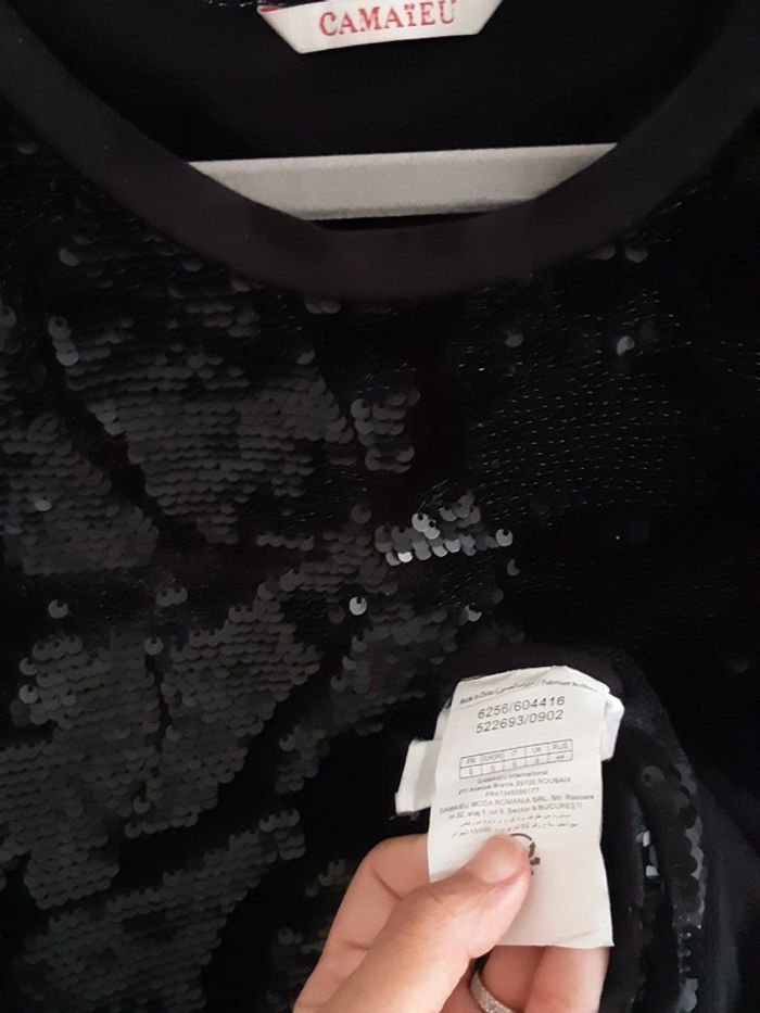 Tee-shirt/blouse noir à sequins Camaïeu. Taille S. Très bonne état.