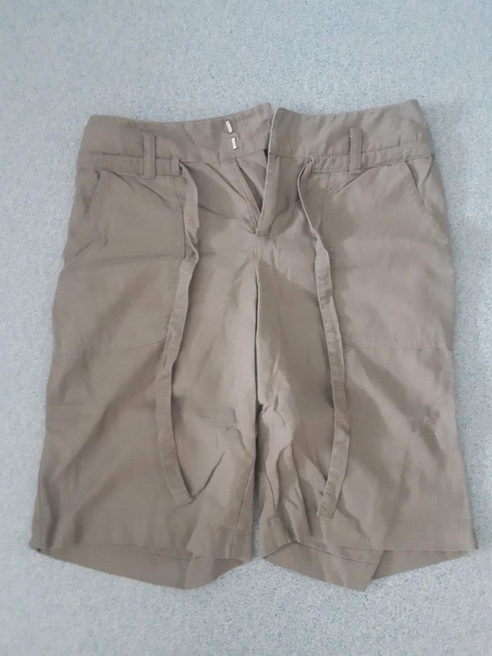 Short en lin beige foncé. Taille 34. Très bon état, manque juste une attache.