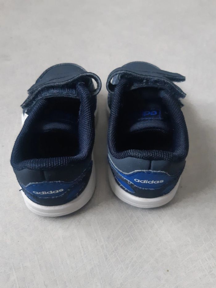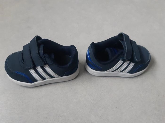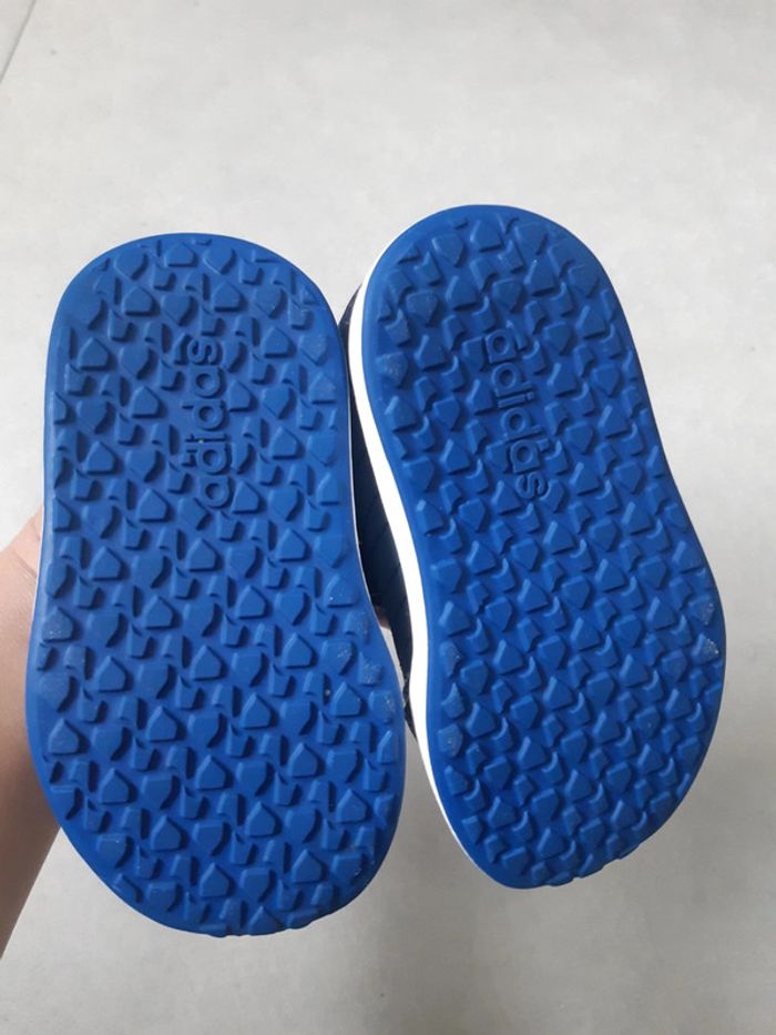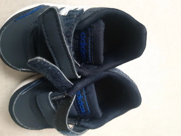 Adidas bleue et blanche pointure 19. Excellent état. Peu porté.