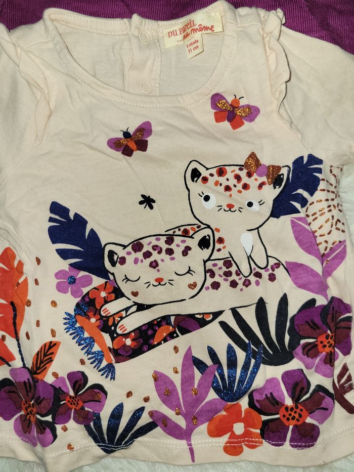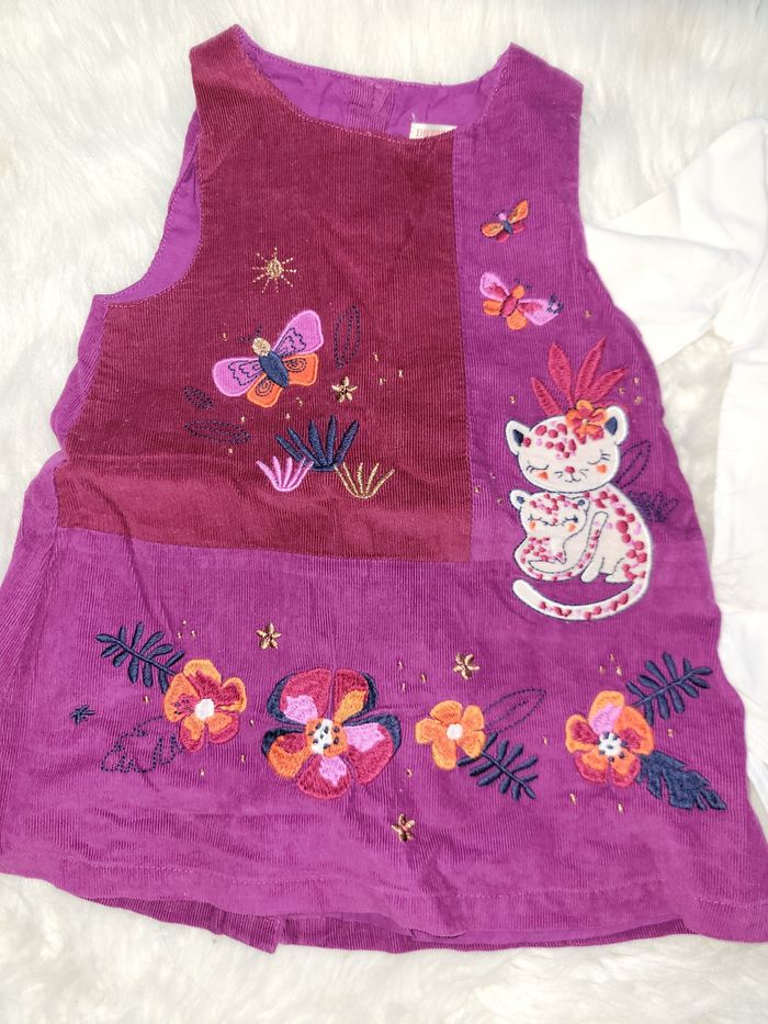 Ensemble barboteuse avec son nœud et volants, double hauteur de pressions. Tee shirt imprimé pailleté en 9mois. Ensemble robe velours fleuri guépard avec son body manches longues.12m. Le tout même collection peut se mixer.