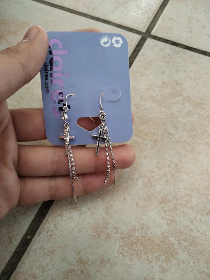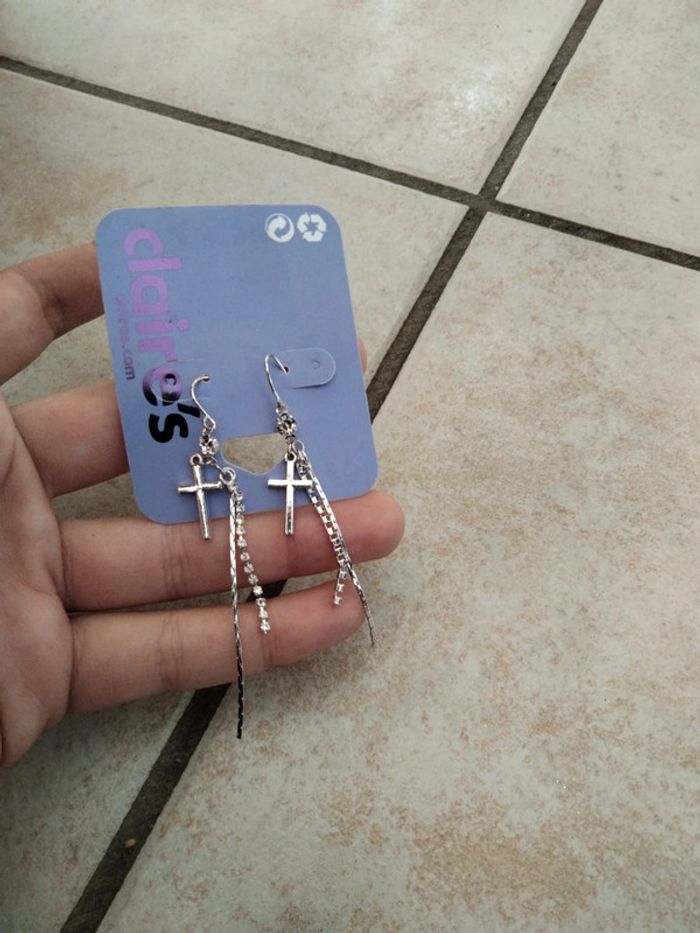 Boucles d'oreilles pendantes avec croix Neuf