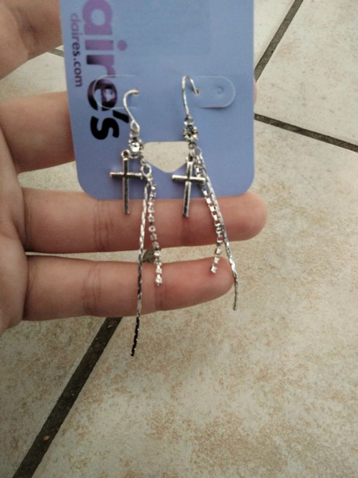 Boucles d'oreilles pendantes avec croix - photo numéro 3
