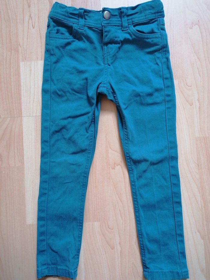 Pantalon qui se ferme avec un bouton pression. 2 poches devant et derrière.