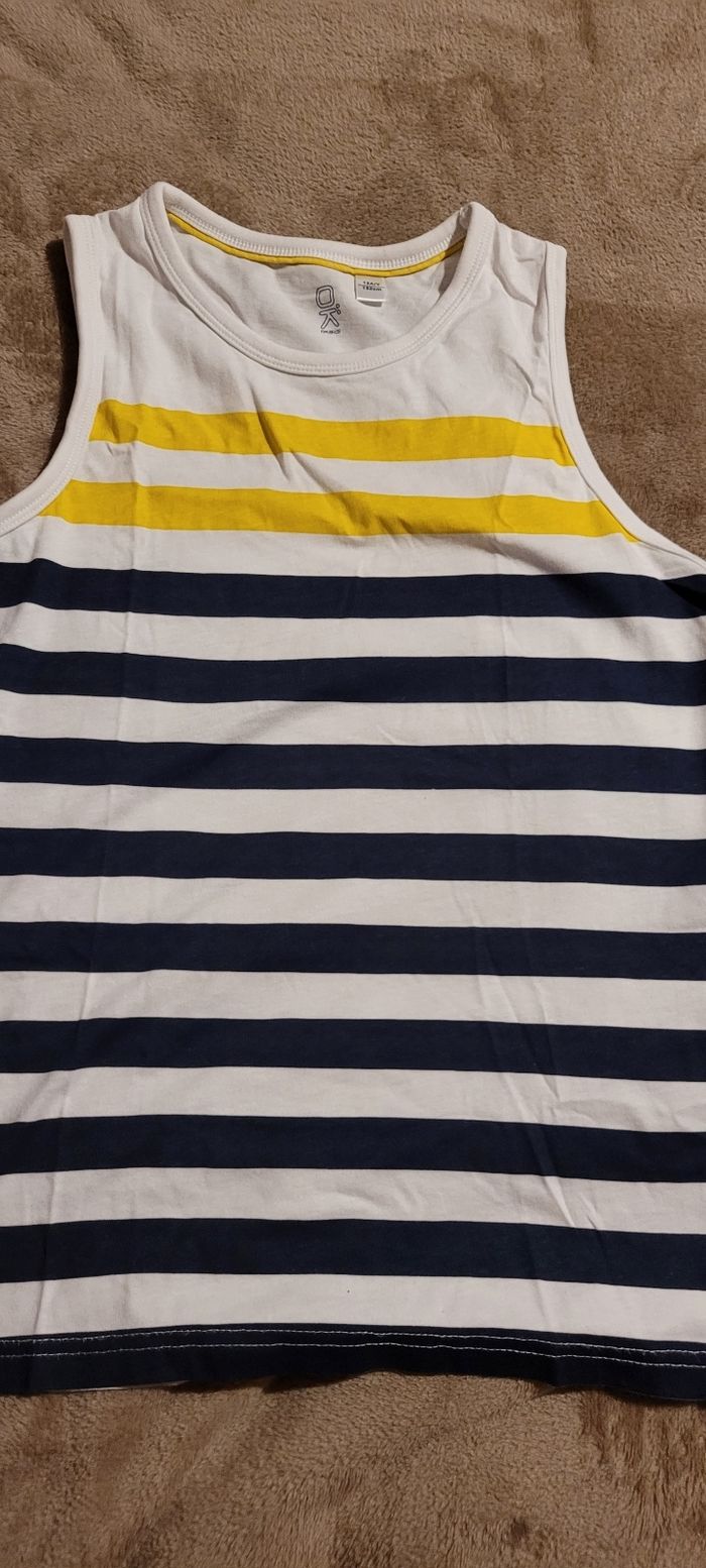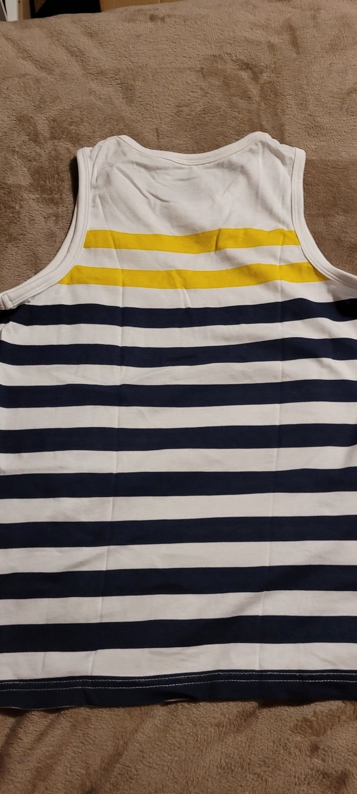 Débardeur Blanc , bleu marine et jaune Okaïdi 12 ans Neuf sans étiquette