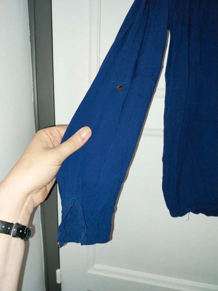 Blouse bleue de la marque Camaïeu. Boutons dorés, manches retroussables. Bas reserré avec élastique. Matière légère et agréable à porter. Portée mais encore en tres bon etat. #mariesouc_42 #mariesouc_haut #mariesouc_camaieu