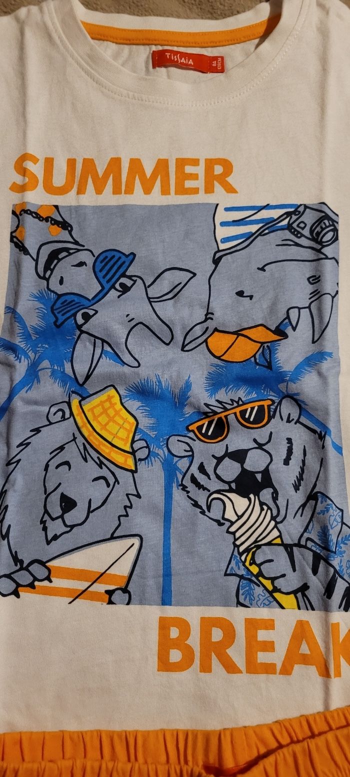 Pyjashort Blanc et orange 8 ans Tissaia Neuf