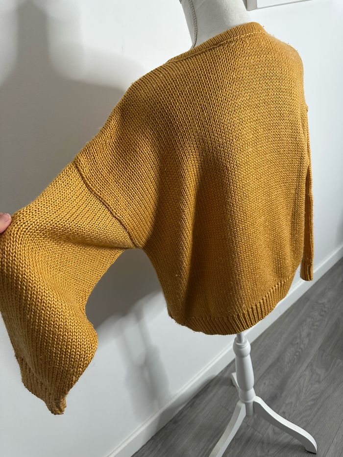 Pull - Excellent état - Taille 42 équivalent XL - Maille et broderies - Moutarde, blanc et broderies velours multicolores - Ultra doux et chaud - Vintage, années 80´ - Broderies dorées fleurs feuilles - Empiècements en velours - Pas d’étiquette de taille ni de matière Dimensions: - 60cm niveau aisselles - 60cm de long