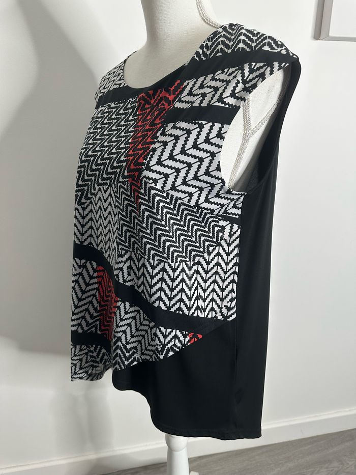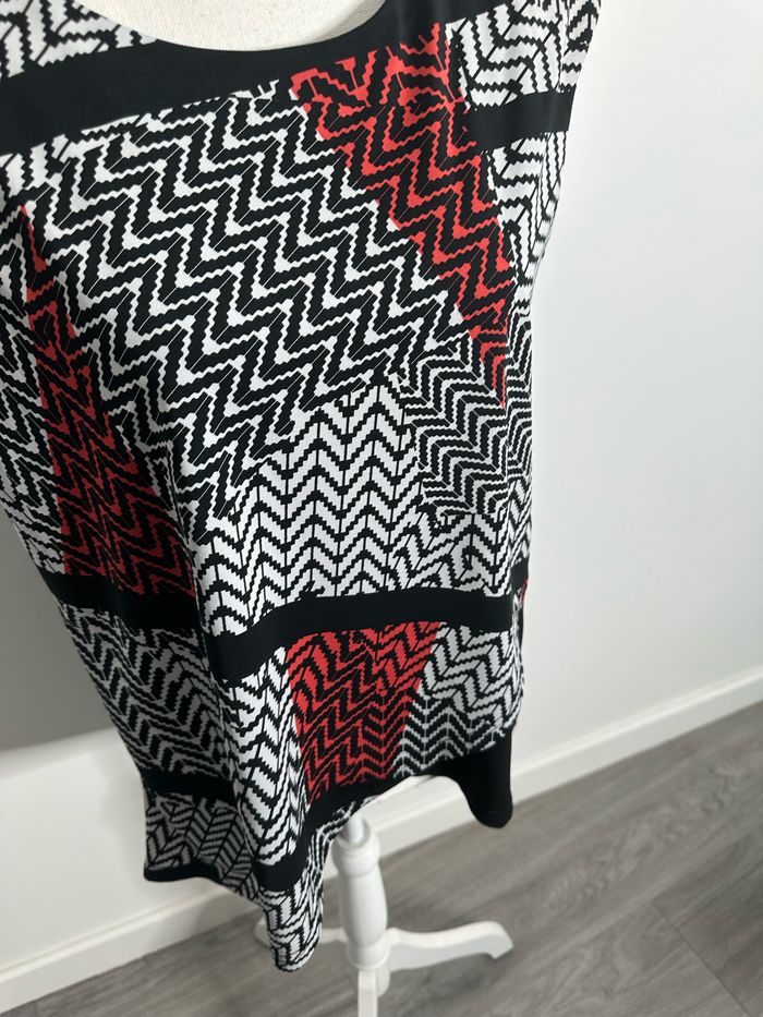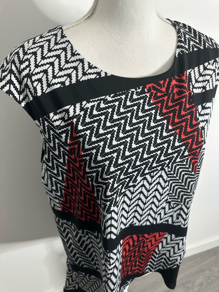 Blouse asymétrique bariolée géométrique noire blanche et rouge T3 40 L - photo numéro 3