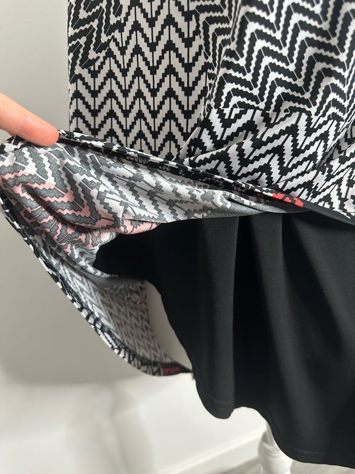 Blouse asymétrique bariolée géométrique noire blanche et rouge T3 40 L - photo numéro 7