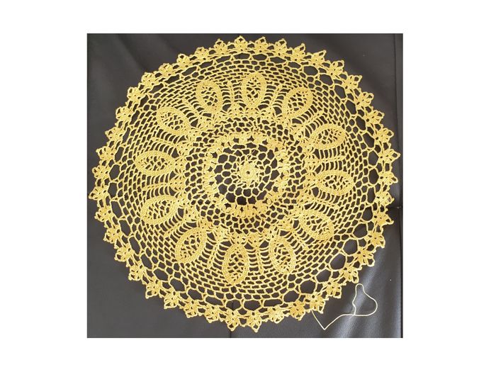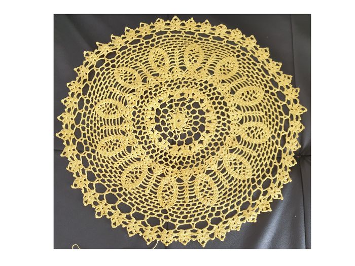 Napperon 30. Napperon jaune fait main. Diamètre: 41 cm. En très bon état. Sans marque. 3€. #vero38110decorations