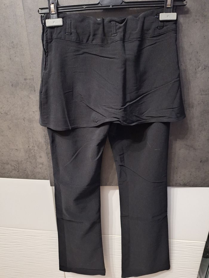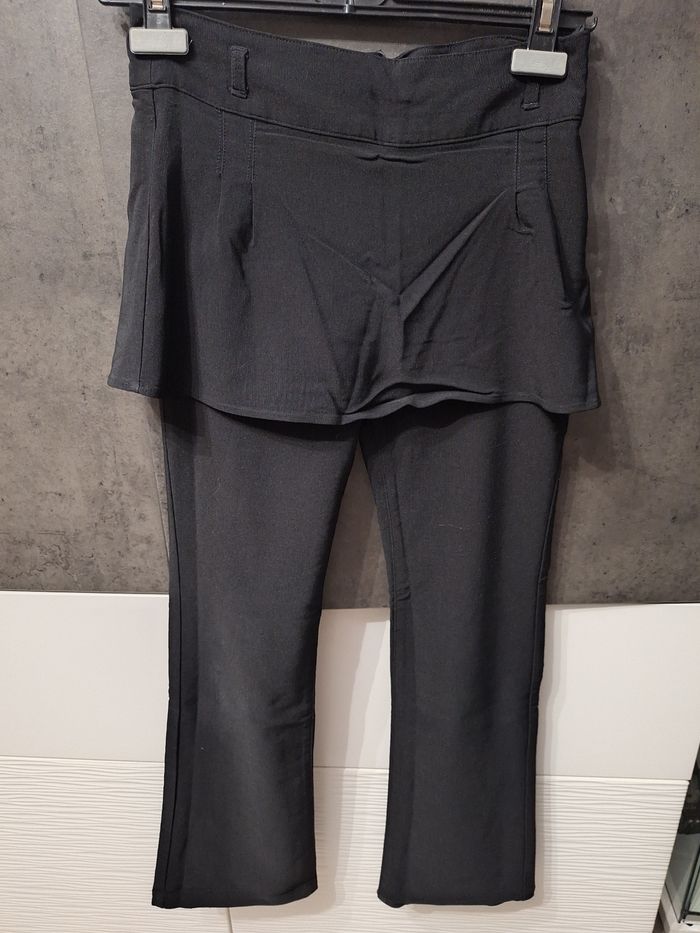 Joli pantalon noir avec jupette intégrée, très agréable à porter, fermeture éclaire + bouton intérieur sur côté, ceinture élastiquée intérieure, marque Bilook, taille 14 ans, peu porté en très bon état
