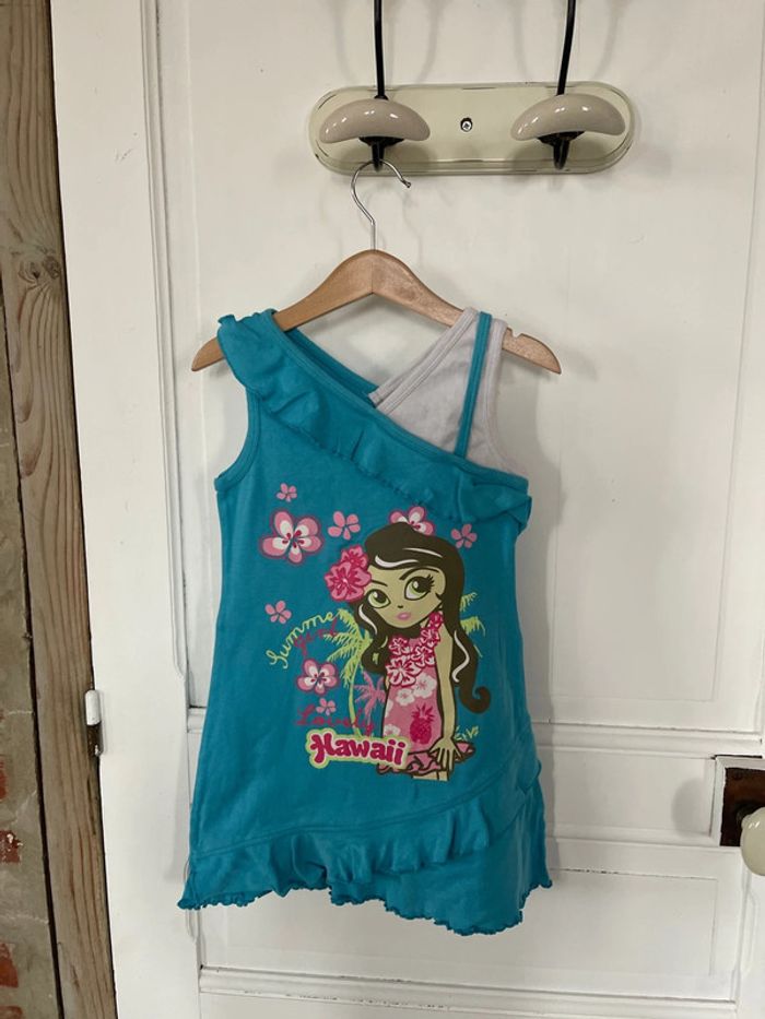 Robe vinyle, fraise cinq ans en très bon état sauf un tout petit trou voir photo