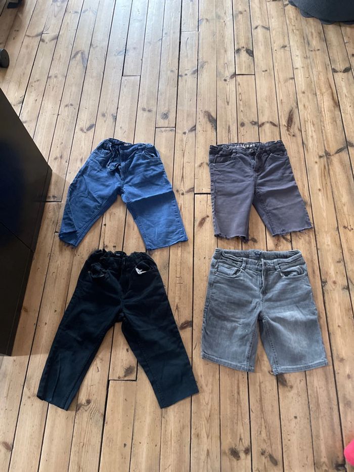 Lot de short, trois sont des pantalons qui ont été coupés est un vrai short, il ne reste plus qu’à faire les ourlets