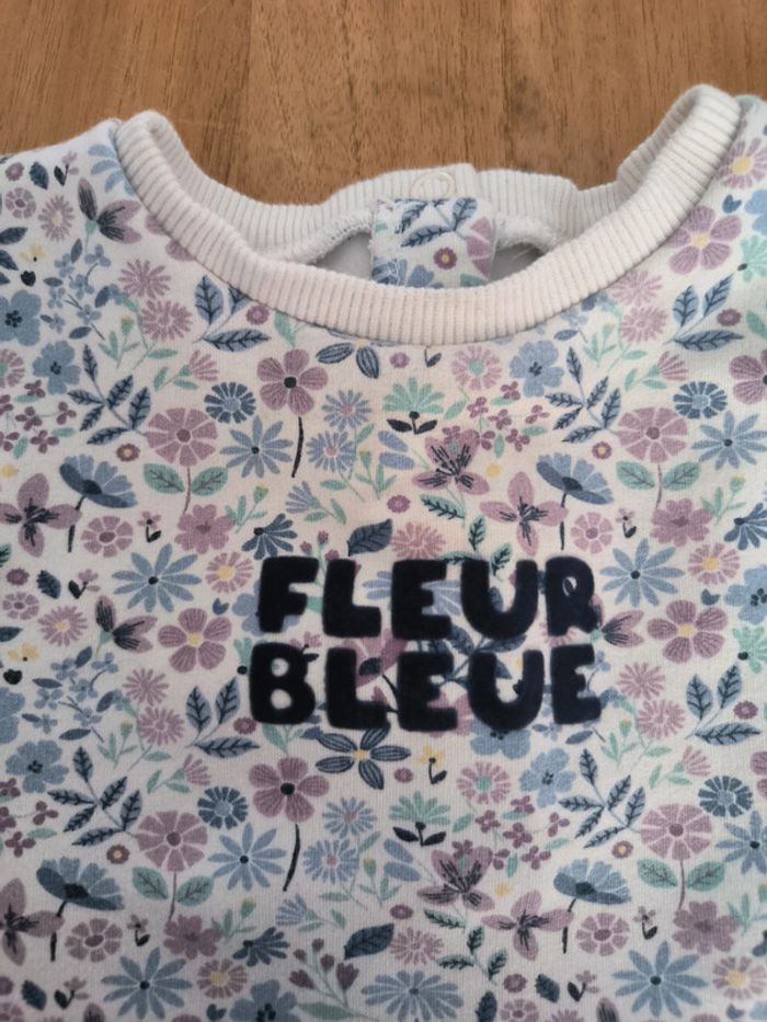 ⚠️ tâche au dessus de l'inscription "fleur bleue" voir dernière photo 🌸 Haut de la robe fleuri (lilas et bleu) et bas en jean #18mois_fille_gwendolinevallois