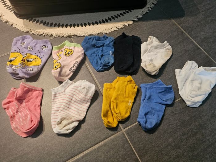 Bonjour 👋 Je vend ce : 👉 lots de soquettes 35.38. Titi et uni Légèrement bouloche et un peu tacher pour certaines Maison 🏠 non fumeur et sans animaux '