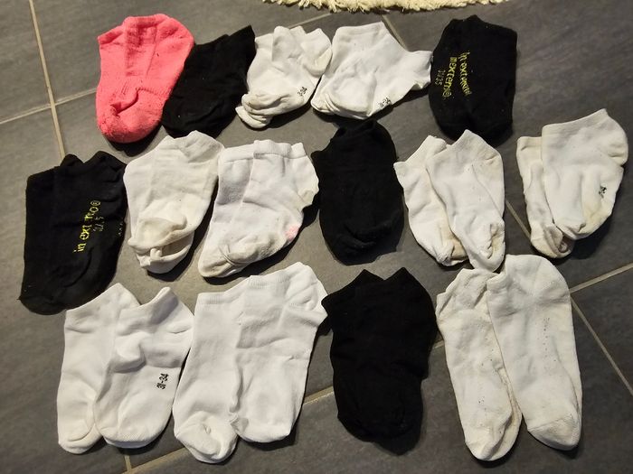 Bonjour 👋 Je vend ce : 👉 lots 15 paires de soquettes 31.35 uni Légèrement bouloche et un peu tacher pour certaines Maison 🏠 non fumeur et sans animau ..I"x
