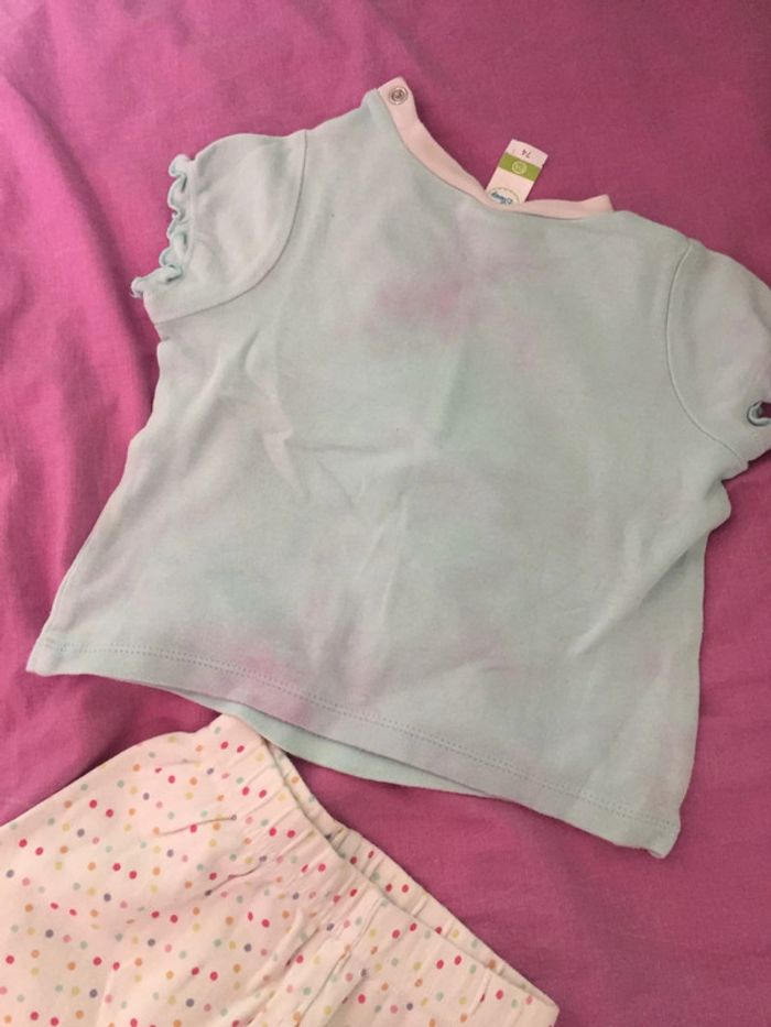 Très bel ensemble d’été pour fille en très bon état, idéale pour l’été. Convient pour fille de 9-12 mois.