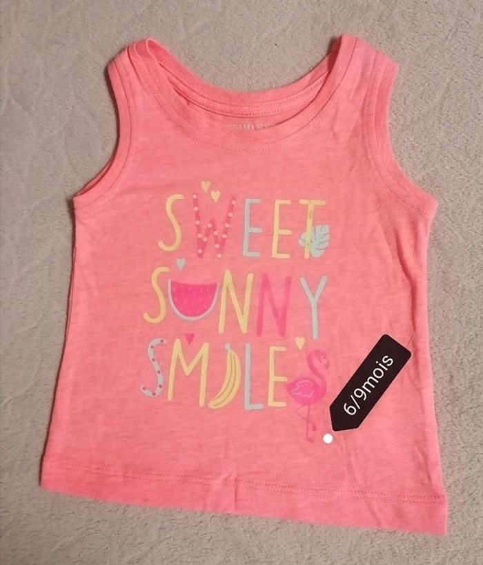 Débardeur filles, primark 6/9mois. (74cm). Orange 60%coton. 40%polyester Neuf sans étiquettes 4€
