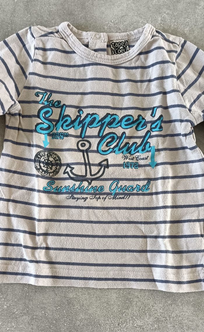 Haut manches longues garçon rayé beige et bleu, taille 12 mois. 1€