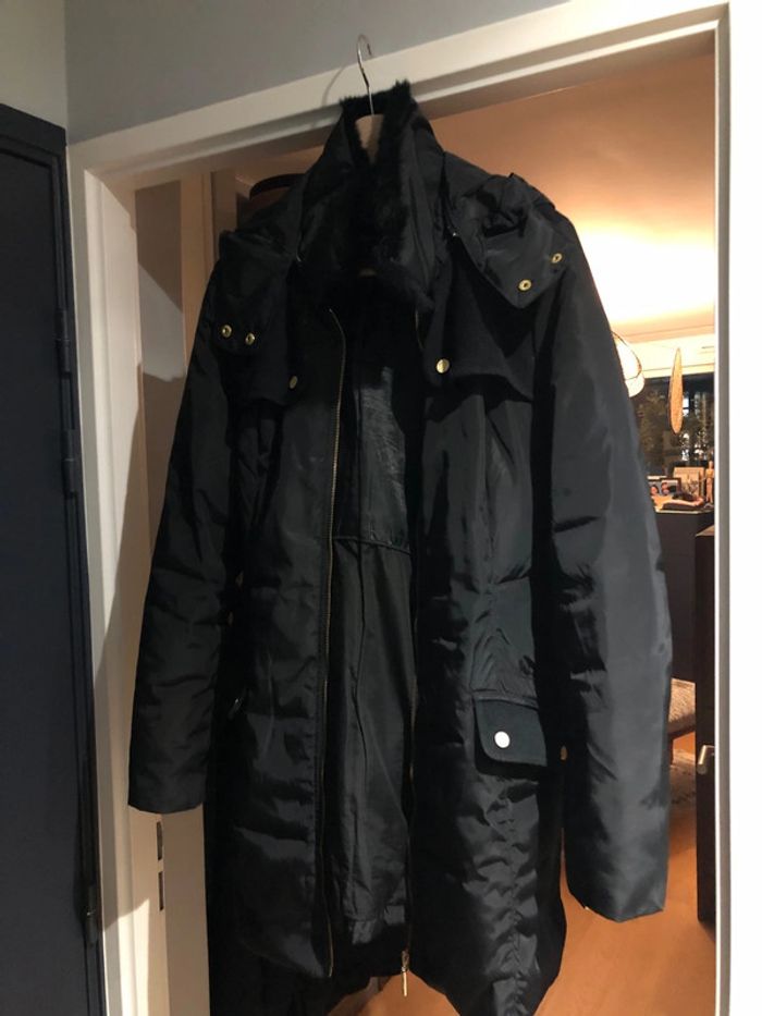 Coloris noir, taille XL. Capuche amovible et col Ceinture à la taille. État impeccable