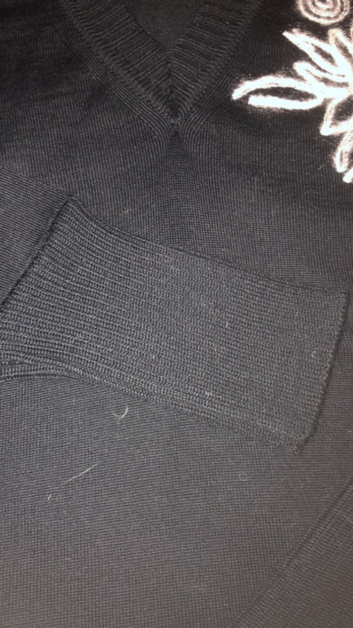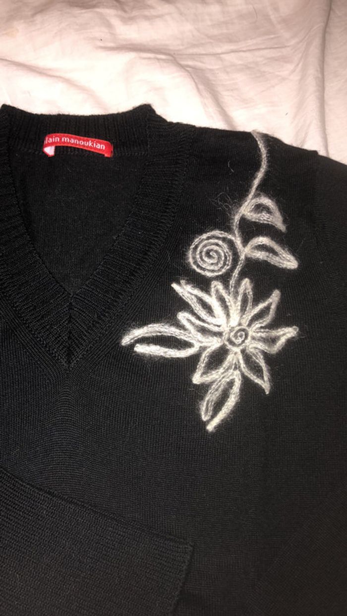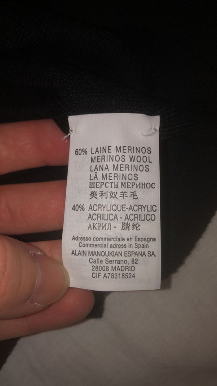 marque Manoukian. couleur noire avec broderie en laine sur un côté. état neuf et jamais porté. 60% laine