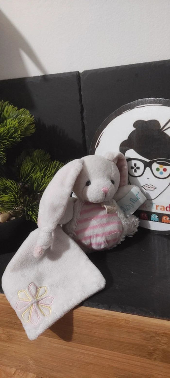 Doudou lapin blanc rose mouchoir fleur Baby Nat Layette BN0100