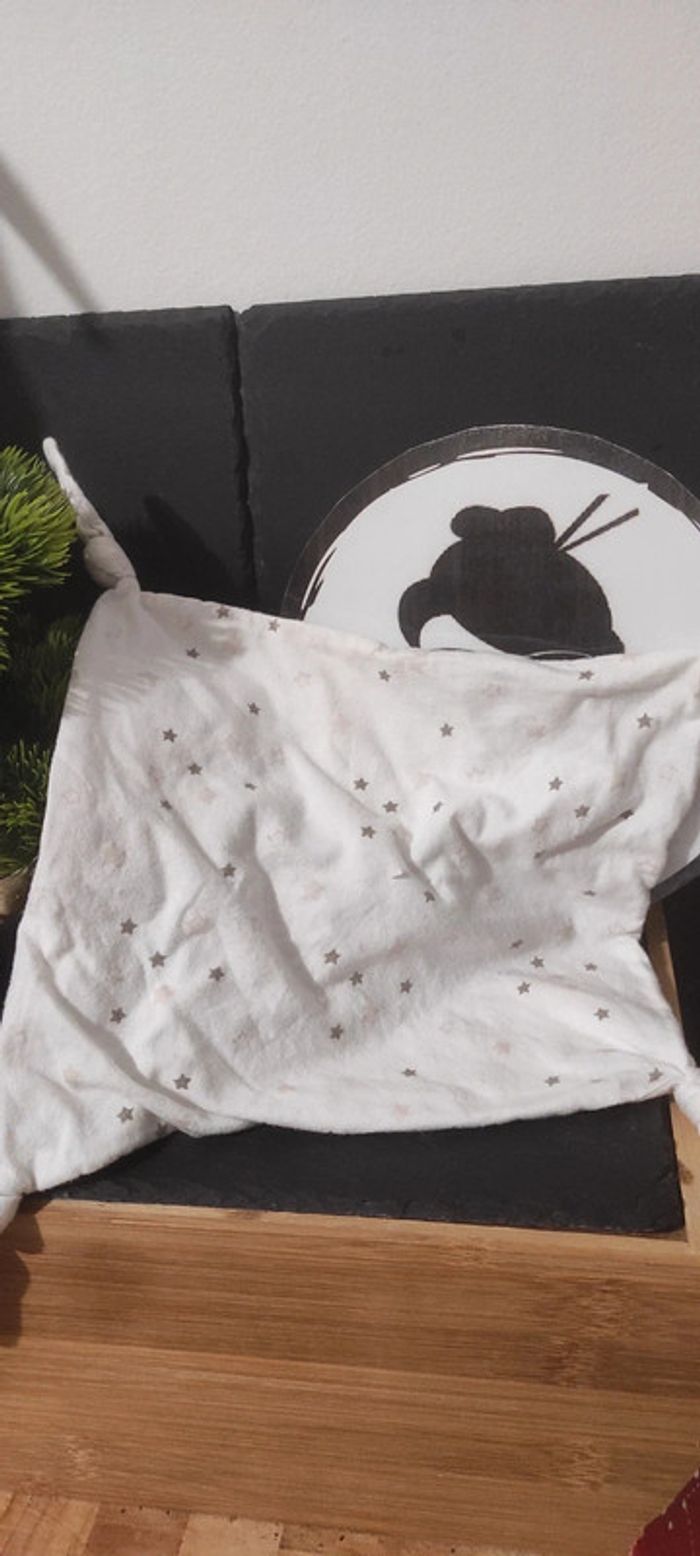 Doudou Lulu castagnette Gemo Ours plat blanc 4 noeuds etoiles roses gris blanc - photo numéro 1