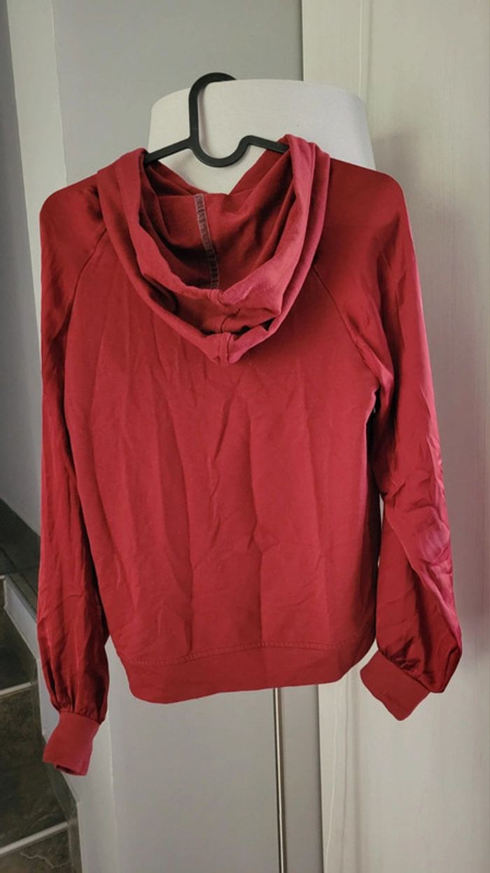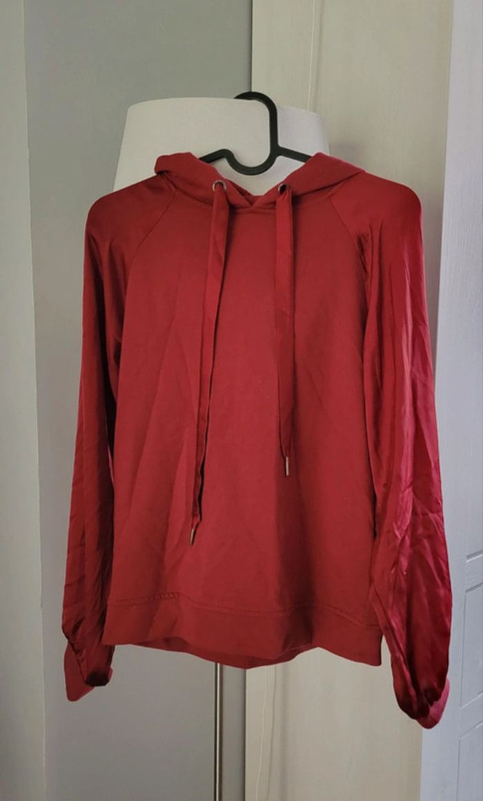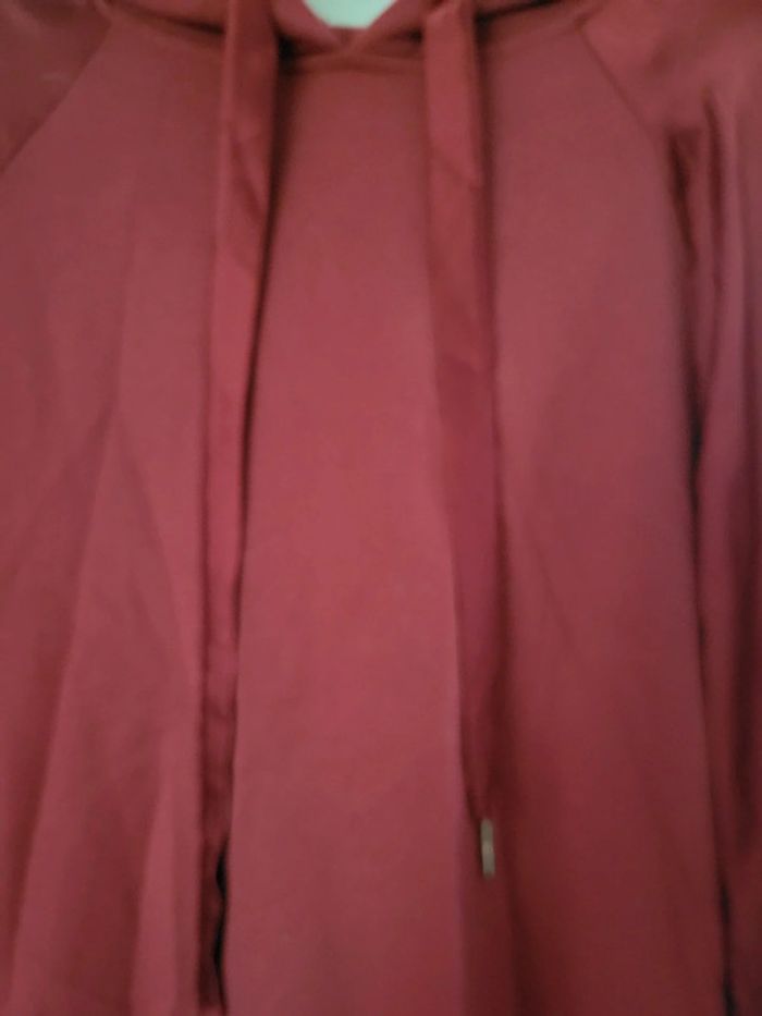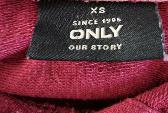 Tee-shirt bordeaux manches longues à capuche femme XS. Only. Bi matières. Manches et cordons de serrage satinés. #teeshirtmancheslonguesfemme34 #only34 #femme34 #teeshirtacapuchefemme34 #onlyfemme34 #evyemi #femme34evyemi