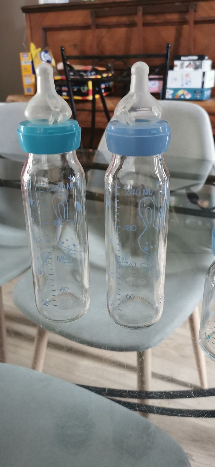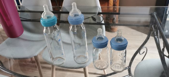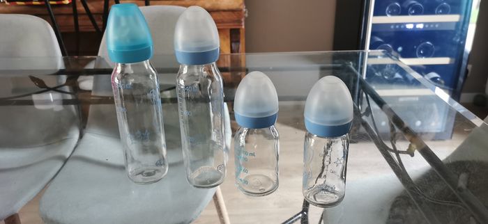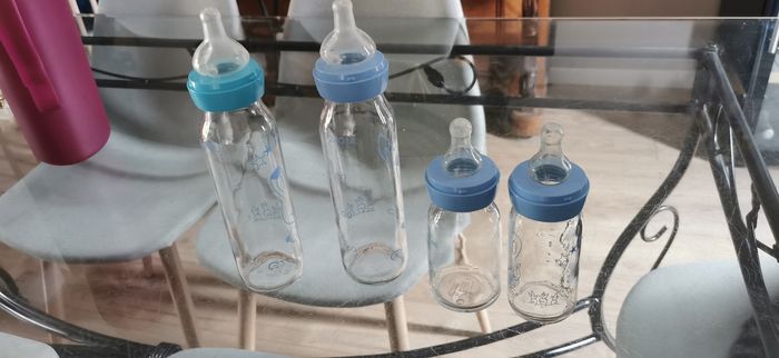 Je vends 4 biberons:2 grands (240 ml) et 2 petits (110ml). Ils sont en très bon états.