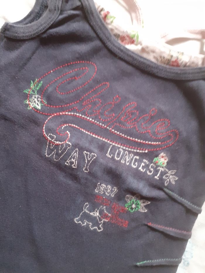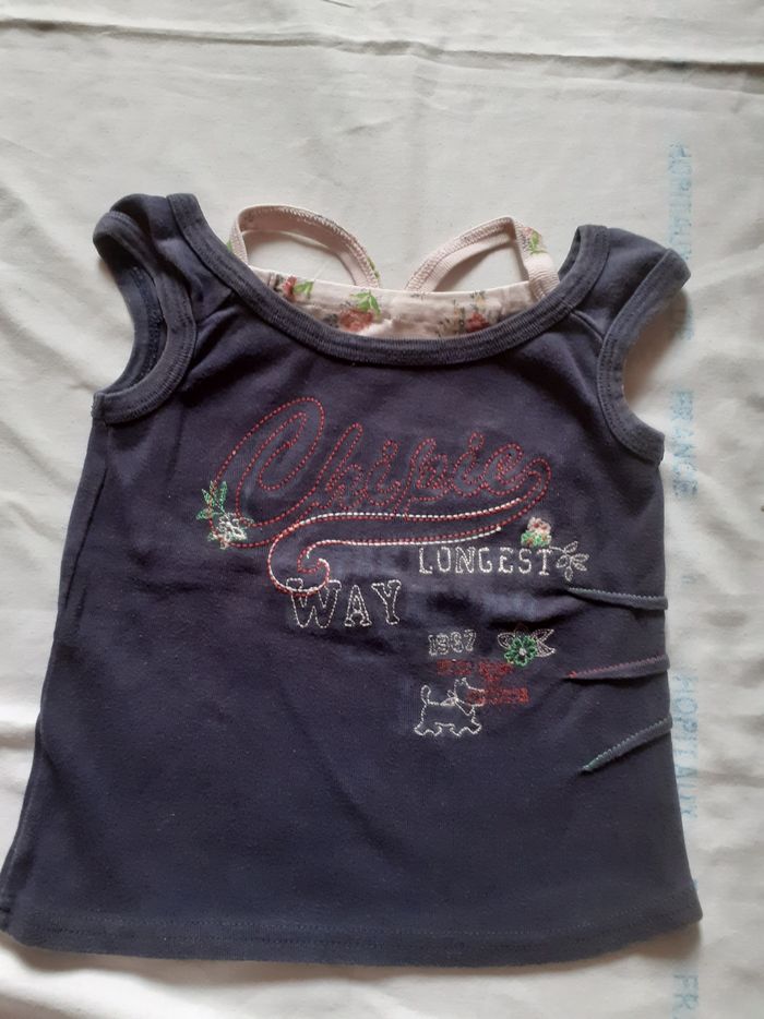 Débardeur petites bretelles marine avec ajout bretelles blanches 4 ans