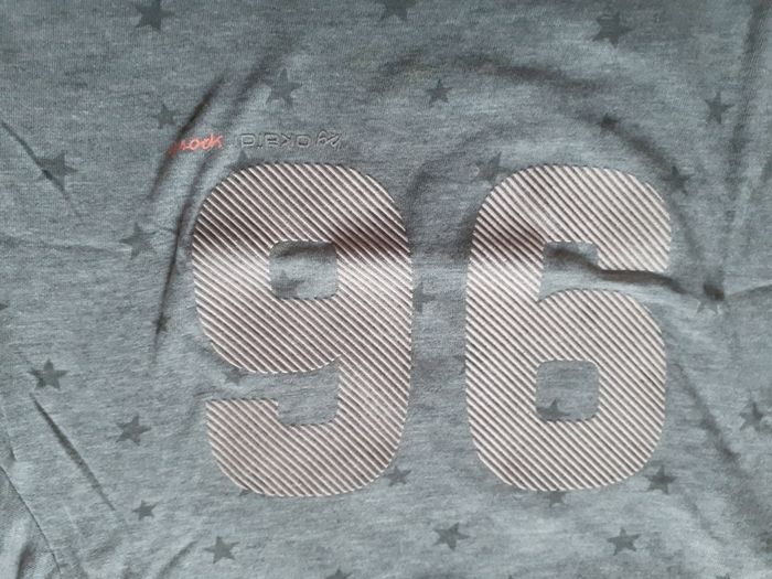 Tee-shirt gris avec étoiles grises foncées motif 96 rose - photo numéro 1