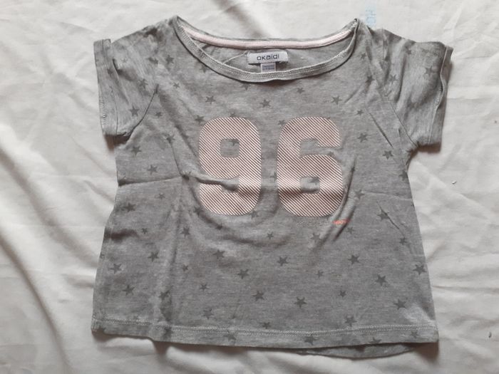 Tee-shirt gris avec étoiles grises foncées motif 96 rose - photo numéro 2