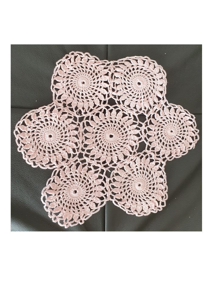 Napperon 32. Napperon rose fait main. Diamètre: 27 cm. En très bon état. Sans marque. 2€. #vero38110decorations
