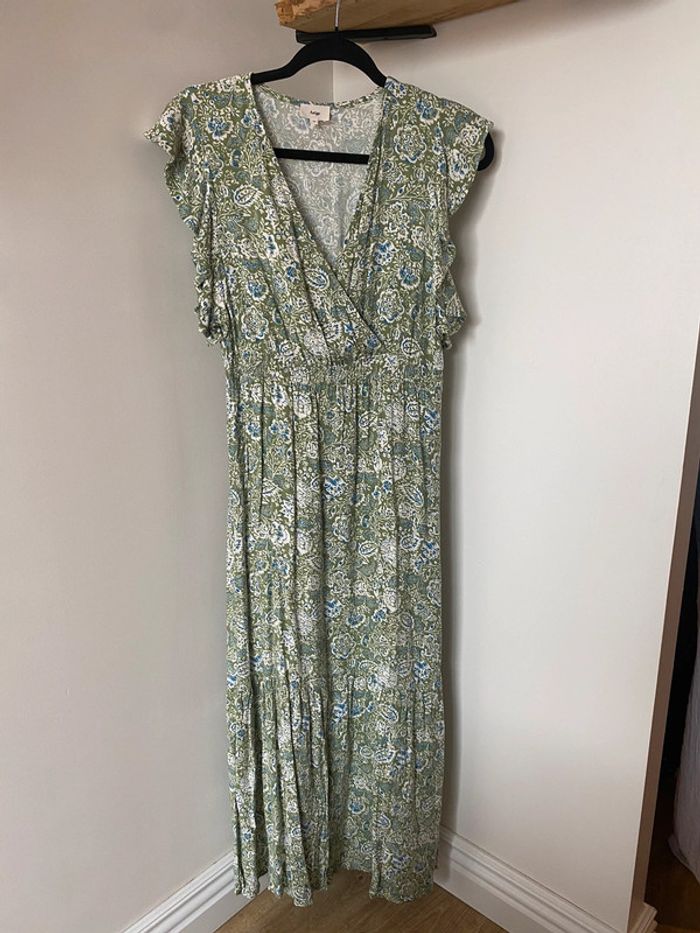 Robe ange col V avec ceinture élastiqué à la taille Pas transparent volant sur les manches Taille 0 qui correspond à un xs Envoie rapide