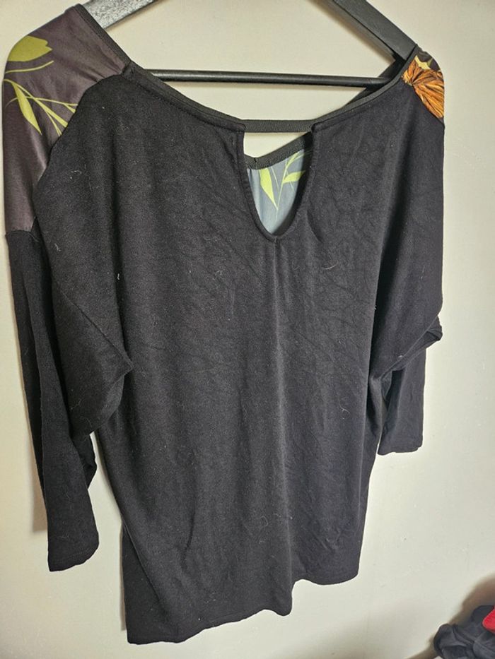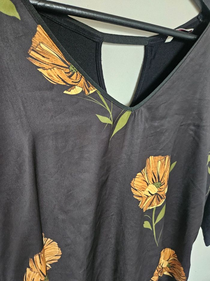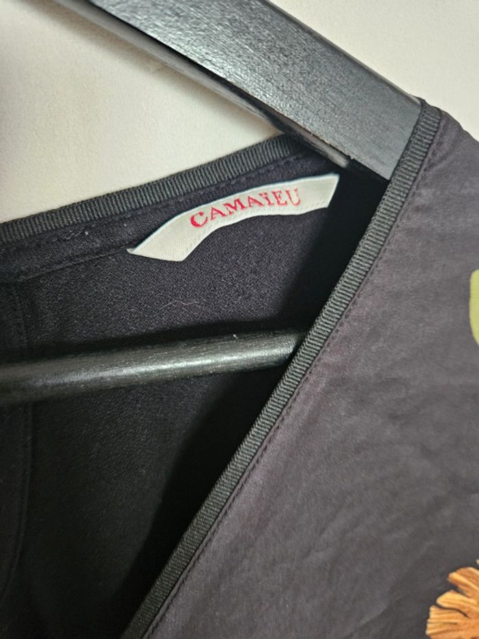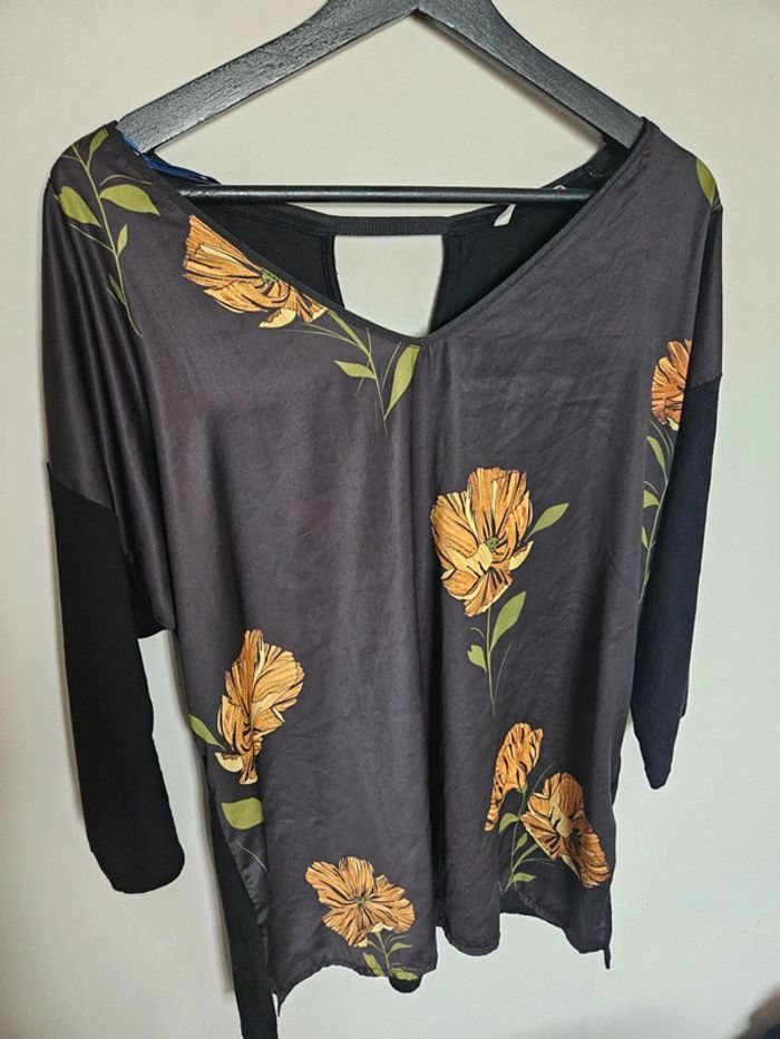 📌Lot 20% de remise dès 5 articles Blouse manche3/4, noire avec des fleurs jaunes, décolleté en v très chic ! ➡️Largeur à plat sous les bras 53 cm➡️ Longueur 70  cm ➡️viscose ou polyester ⭐Excellent état ✈Envoi rapide des colis 💗 Abonnez vous à mon profil, nombreux articles ajoutés régulièrement ! #laetitresors_blouse42 #laetitresors #blouse #camaieu #noir #jaune #fleur #fleurie #manche #longue #fluide #bi #matière #chic #occasion #sortie #fête #cocktail