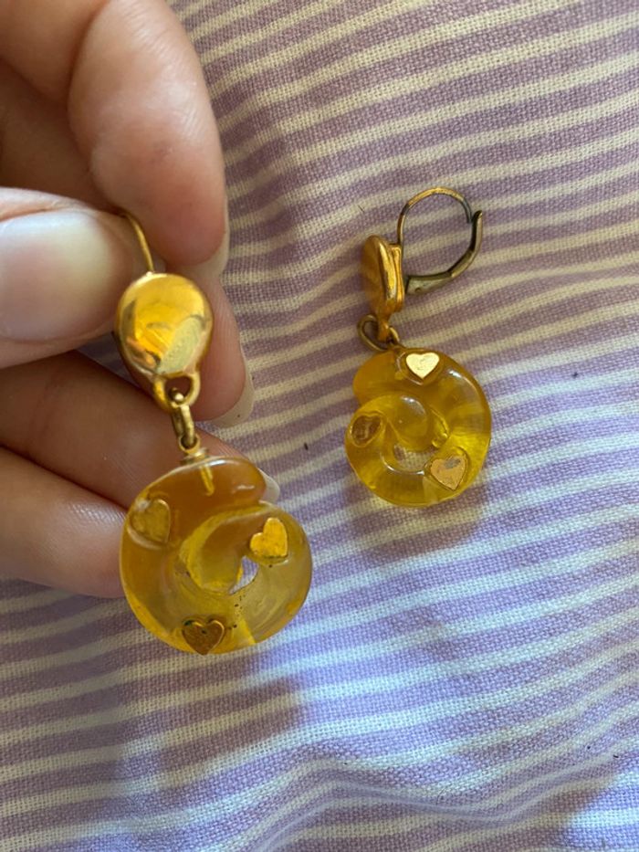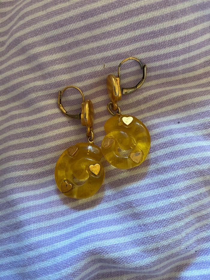 Vend boucle oreille jaune avec cœurs Bon état
