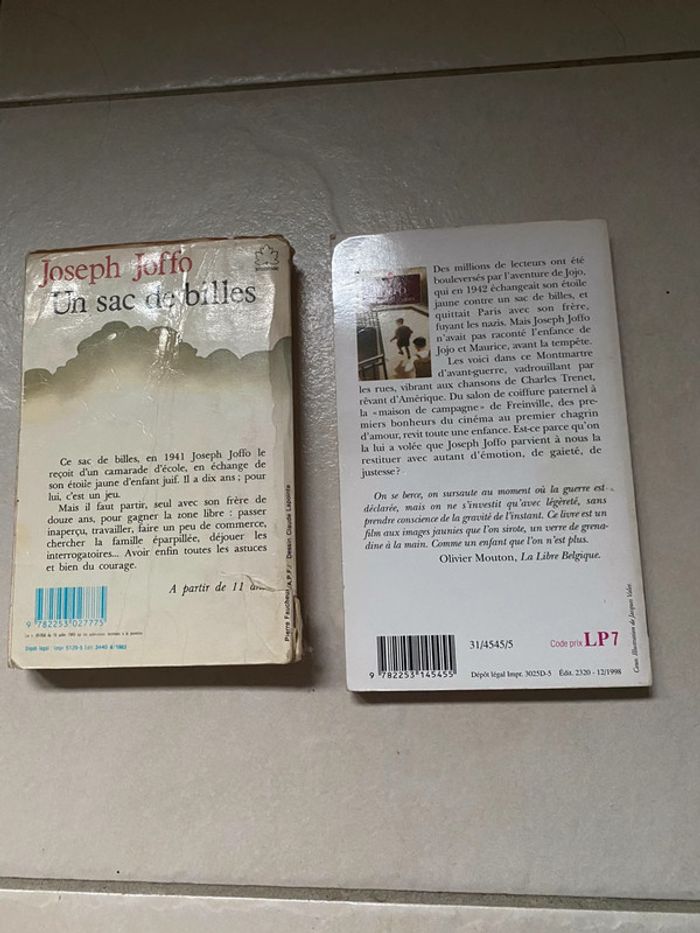 Livres de Joseph Joffo : •Un sac de billes (1€/ état moyen) •Agates et calots (2€/ bon état) ⚠️Possibilité de dissocier le lot, n’hésitez pas