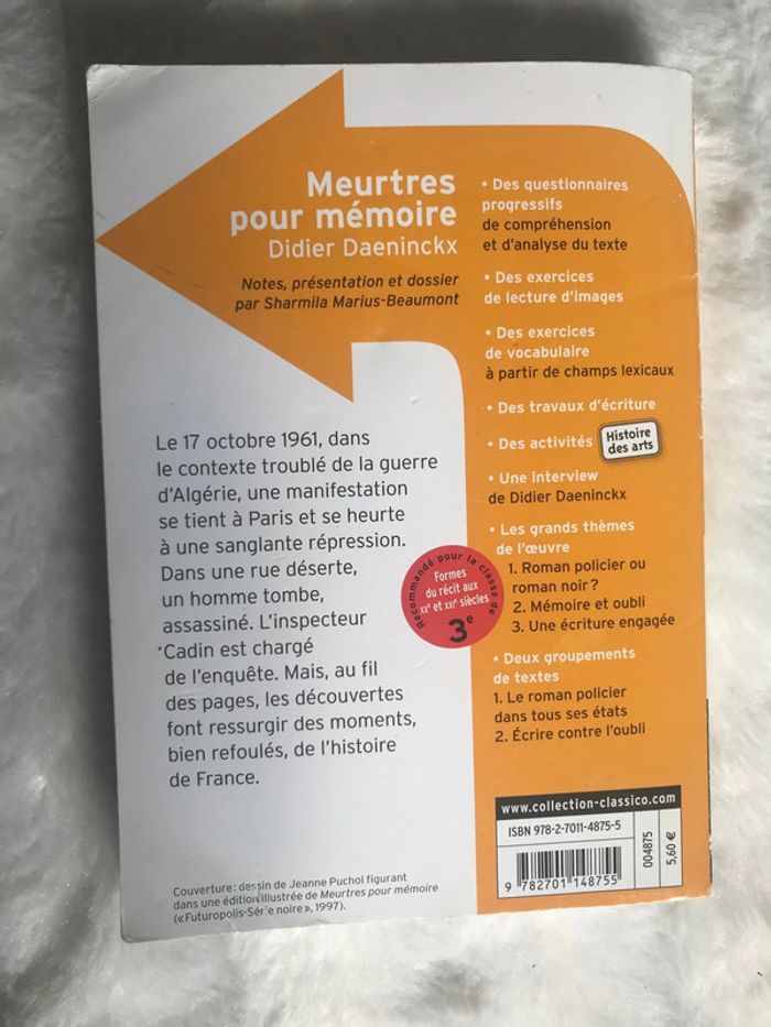 Vend livre Meurtres pour mémoire de Didier Daeninckx Bon état